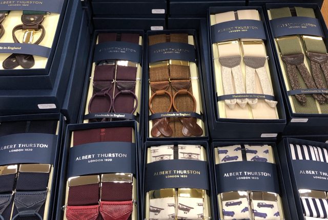 3月の受注会&展示即売会で多くのお客様にご来社頂きご注文いただいたALBERT THURSTONのサスペンダーが7月に入荷いたしました。お客様のお好みで35mmエラスティックの2in1、ブレードエンド、Rigids(リボン)のレザーエンド、Boxcloth、リミテッドエディション、革の種類や帯の柄も様々なサスペンダーが数多く揃い、早速ご注文いただいたお客様の元へお送りさせて頂き喜びの声も頂きました。本当にありがとうございました。次回の受注会の日程は未定ですが、また開催いたしますので是非お越し頂ければ幸いです。
