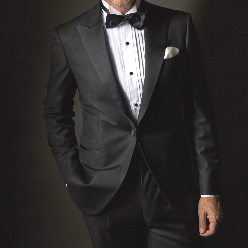 最もポピュラーな夜の正礼装と言えばタキシードです。招待状のドレスコードにブラックタイと書かれていれば黒いタキシードを着用します。
