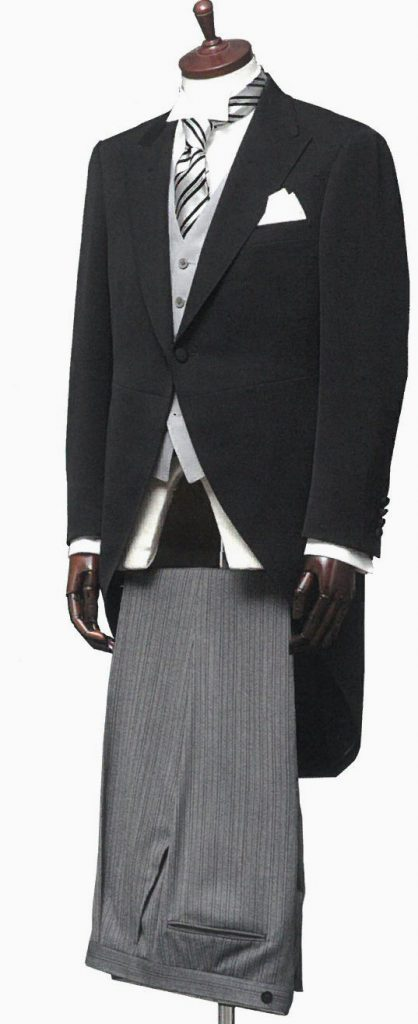 夜の正礼装で最も格式の高い燕尾服ですが日本においては非常に着用シーンが限られており主に宮中晩餐会、舞踏会、大綬章親授式等です。